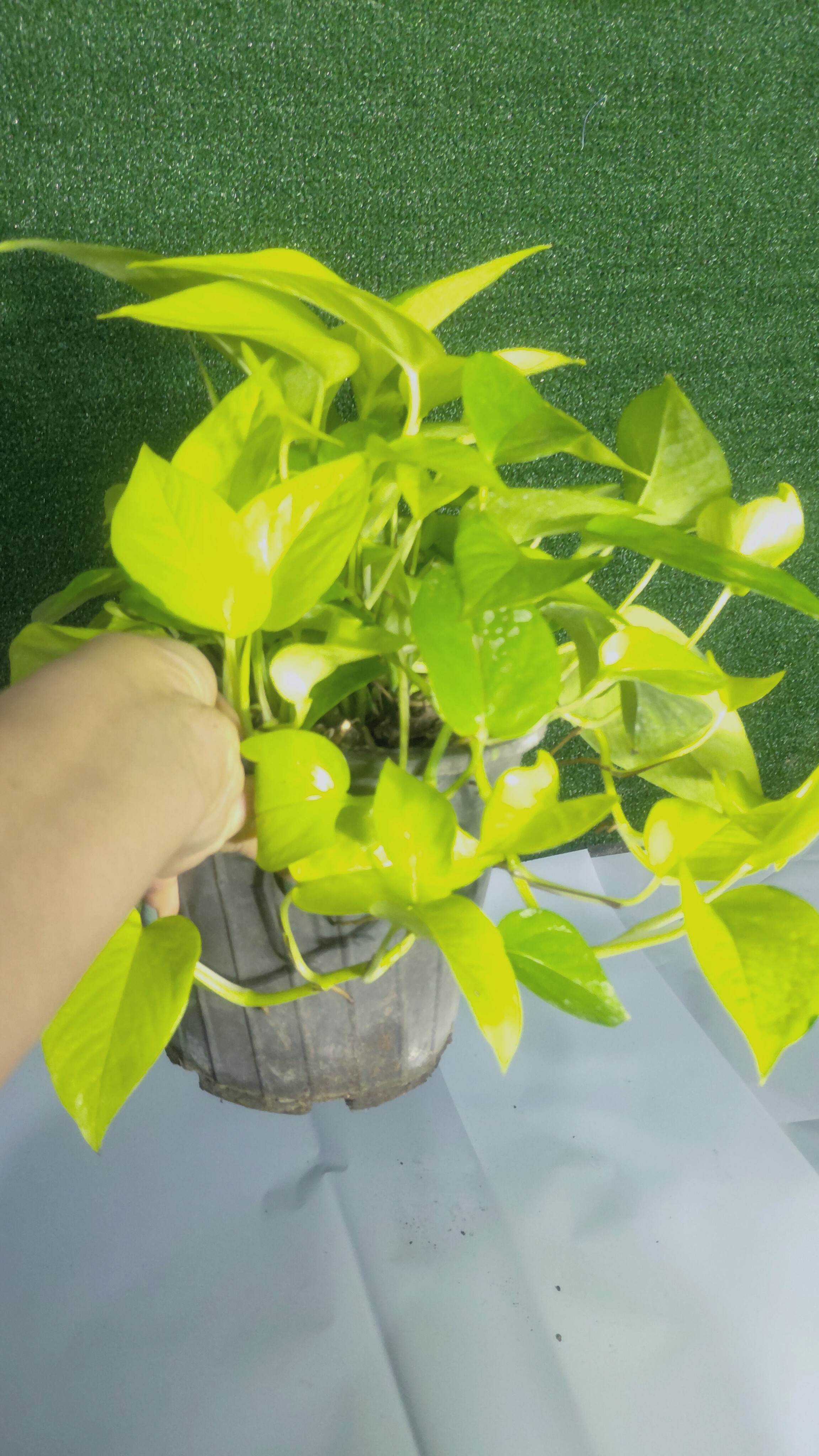 کرده است .برگ های این نوع پتوس سبز نئونی است که برای رشد و تکثیر خود نیاز حتمی به خاک ندارد و
