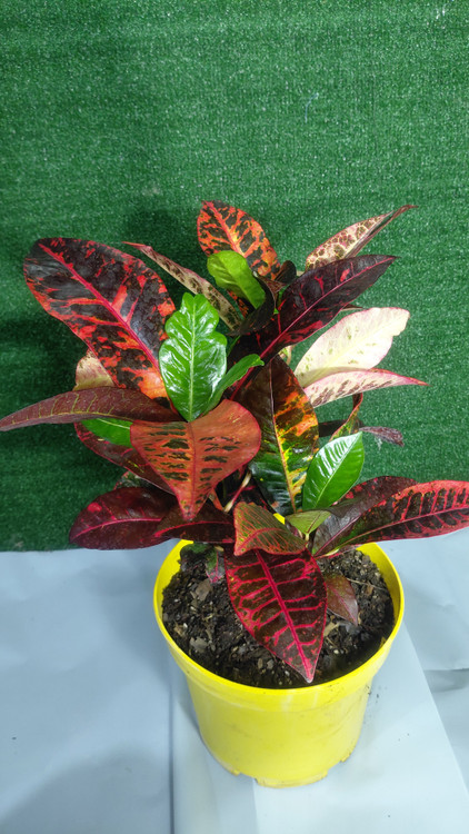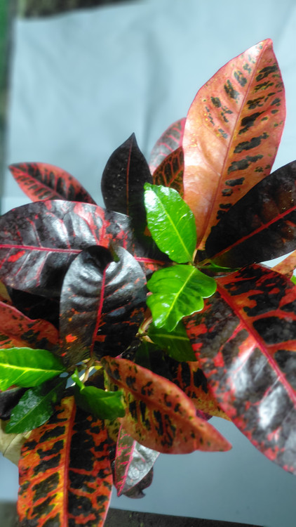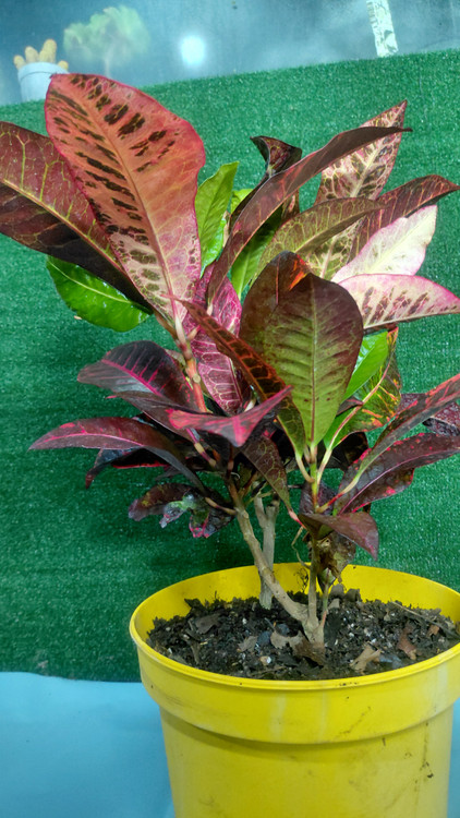 یکی از رنگینترین گیاهان آپارتمانی است و به خاطر رنگی بودن و فرم برگهای آن مورد توجه است، نیاز شدیدی به رطوبت دارد و به همین علت بهتر است به صورت کپهای و مخلوط با گیاهان آپارتمانی دیگر در گلدانهای بزرگ کاشته شود تا از رطوبت حاصله از گیاهان دیگر بهره ببرد. محیط ساکت و بدون جریان هوا و گرم و یکنواختبودن درجه حرارت از احتیاجات دیگر این گیاه است. اگر چه نیاز شدیدی به آب دارد ولی باید مواظب بود سوراخ ته گلدان همیشه باز باشد تا خاک گلدان باتلاقی نگردد. زمستان گذرانی آن کمی مشکل بوده و بهطور کلی با توجه به شرایط سخت زیستی بهتر است در فصل بهار و تابستان از آن استفاده شود. رنگ و شکل برگ با توجه به واریتهها فرقهای اساسی دارد، لکههای تیره صورتی، نارنجی، قهوهای و ارغوانی در برگهایی با زمینه سبز تیره دارد. برگهای جدید و جوان با رنگ سبز ظاهر و به مرور لکههای رنگی در آنها به وجود میآیند.