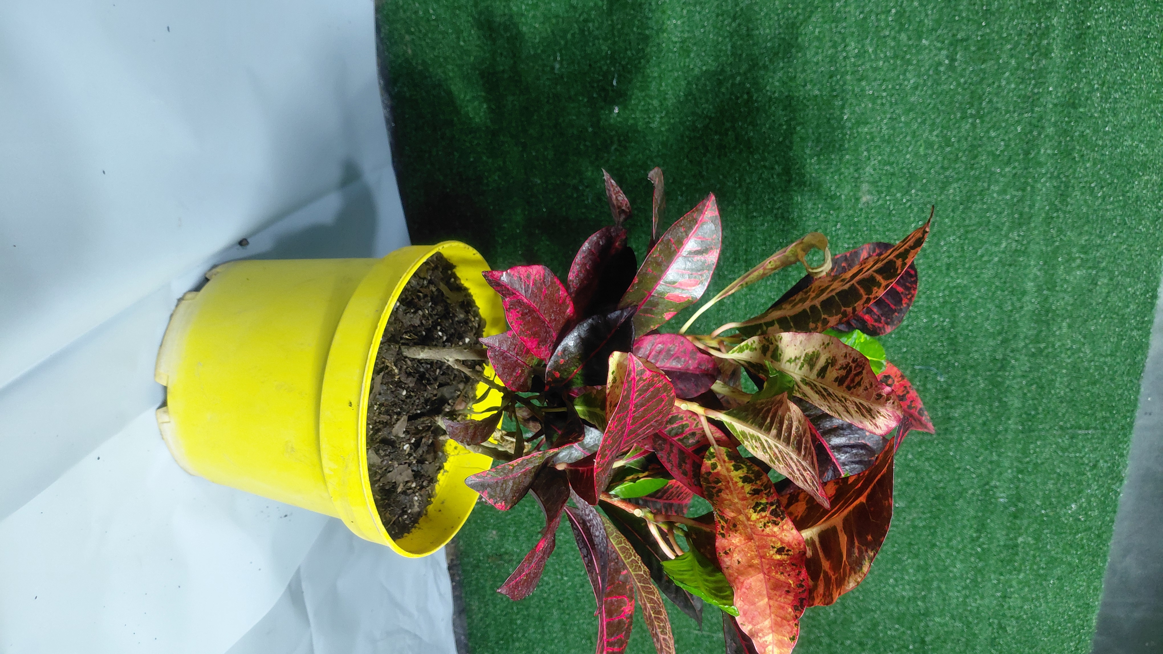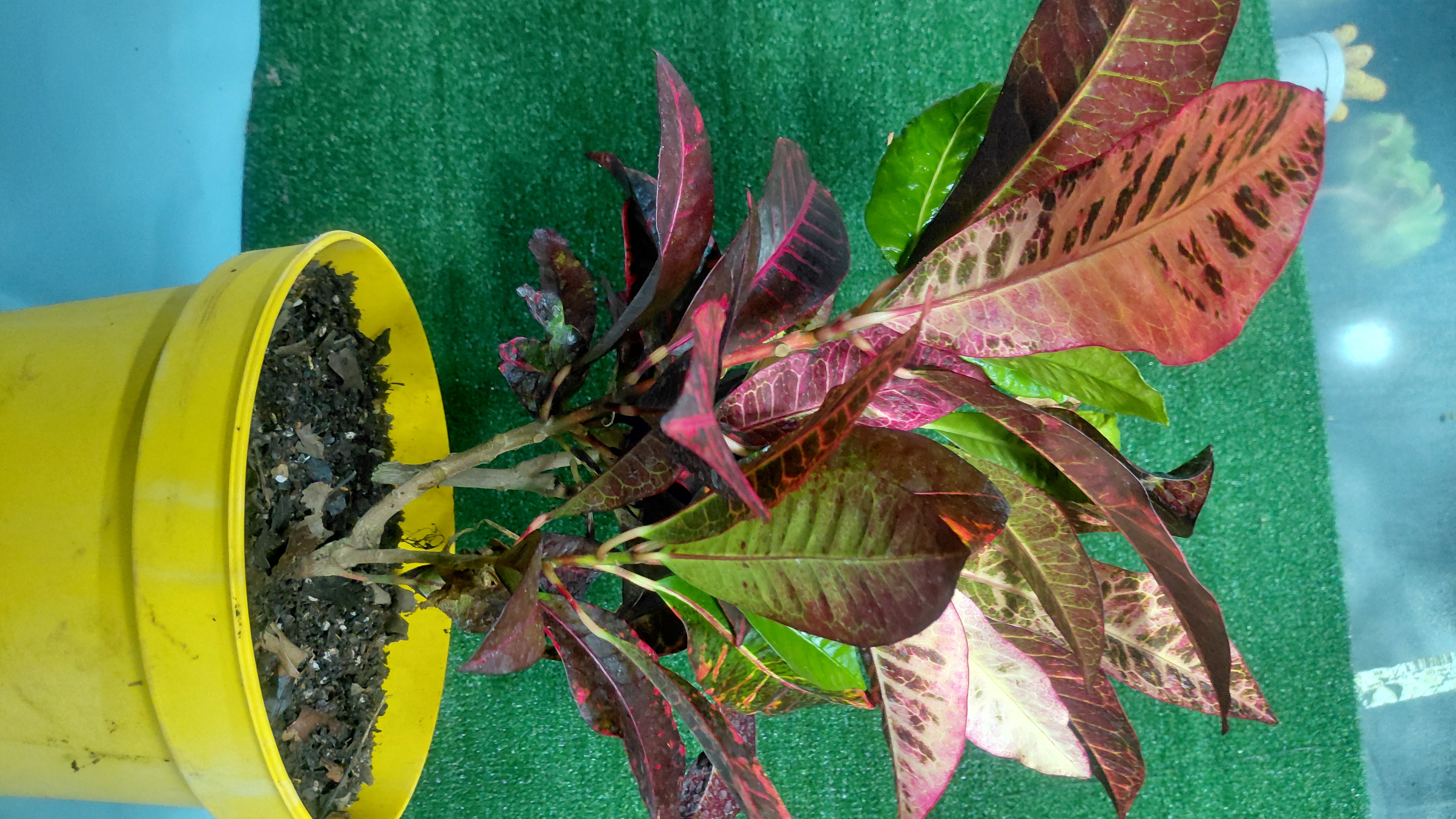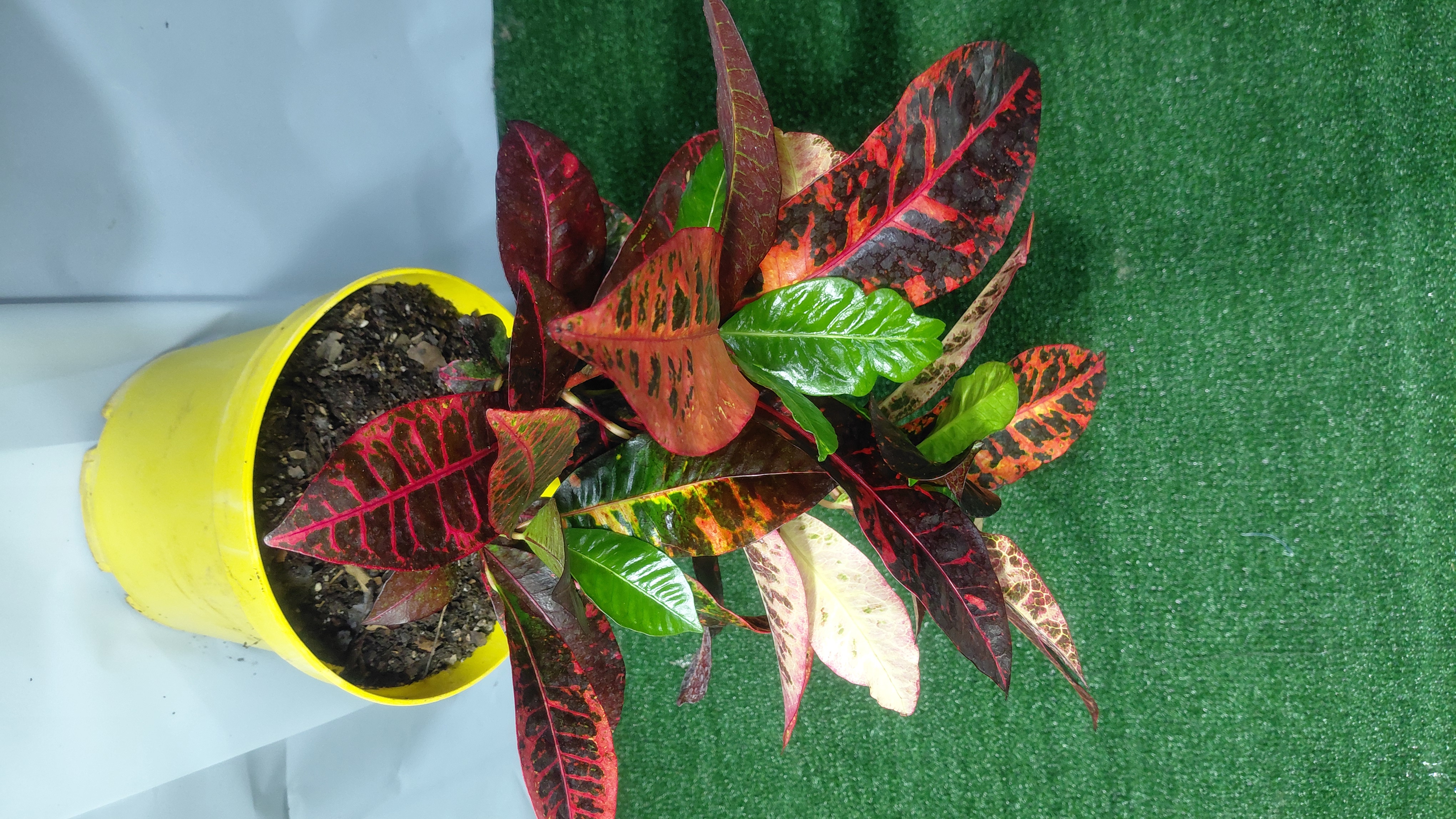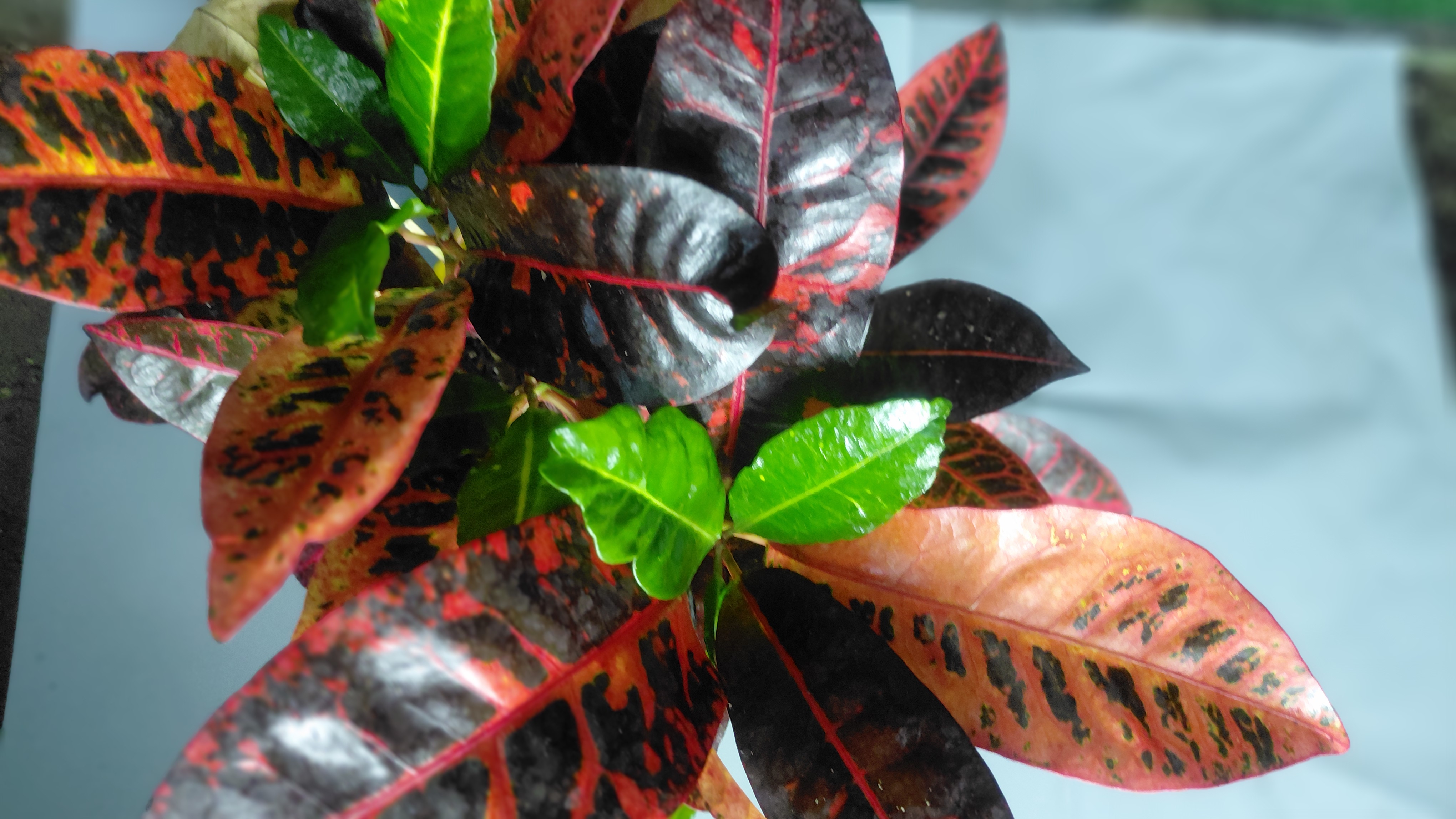 یکی از رنگینترین گیاهان آپارتمانی است و به خاطر رنگی بودن و فرم برگهای آن مورد توجه است، نیاز شدیدی به رطوبت دارد و به همین علت بهتر است به صورت کپهای و مخلوط با گیاهان آپارتمانی دیگر در گلدانهای بزرگ کاشته شود تا از رطوبت حاصله از گیاهان دیگر بهره ببرد. محیط ساکت و بدون جریان هوا و گرم و یکنواختبودن درجه حرارت از احتیاجات دیگر این گیاه است. اگر چه نیاز شدیدی به آب دارد ولی باید مواظب بود سوراخ ته گلدان همیشه باز باشد تا خاک گلدان باتلاقی نگردد. زمستان گذرانی آن کمی مشکل بوده و بهطور کلی با توجه به شرایط سخت زیستی بهتر است در فصل بهار و تابستان از آن استفاده شود. رنگ و شکل برگ با توجه به واریتهها فرقهای اساسی دارد، لکههای تیره صورتی، نارنجی، قهوهای و ارغوانی در برگهایی با زمینه سبز تیره دارد. برگهای جدید و جوان با رنگ سبز ظاهر و به مرور لکههای رنگی در آنها به وجود میآیند.